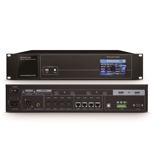 Adopting dual system dual backup multi-channel system unit connection and backup ring connection, four 8-core dedicated conference unit connection ports, four RJ45 network cable connection ports, each supporting 30 units, up to 8 chairman units, can connect up to 128 conference system units, can connect expansion hosts and conference repeaters, and a set of conference systems can simultaneously access up to 4096 conference units;